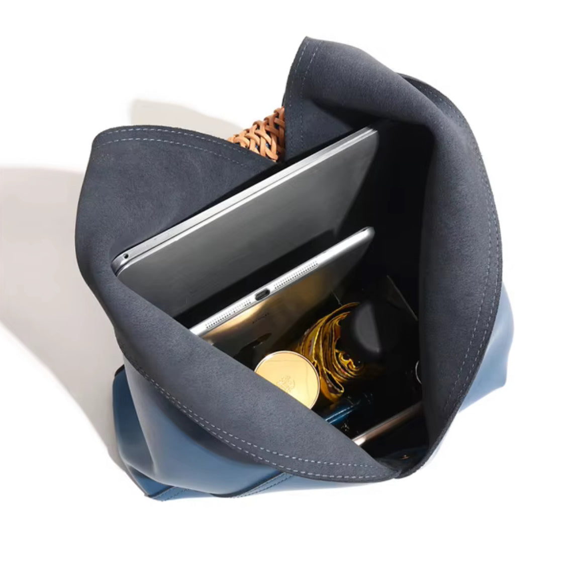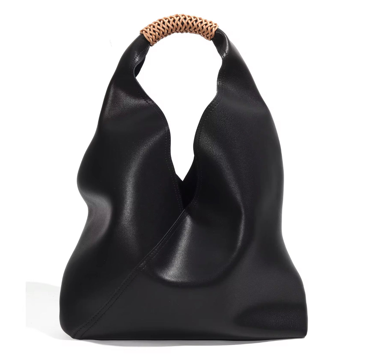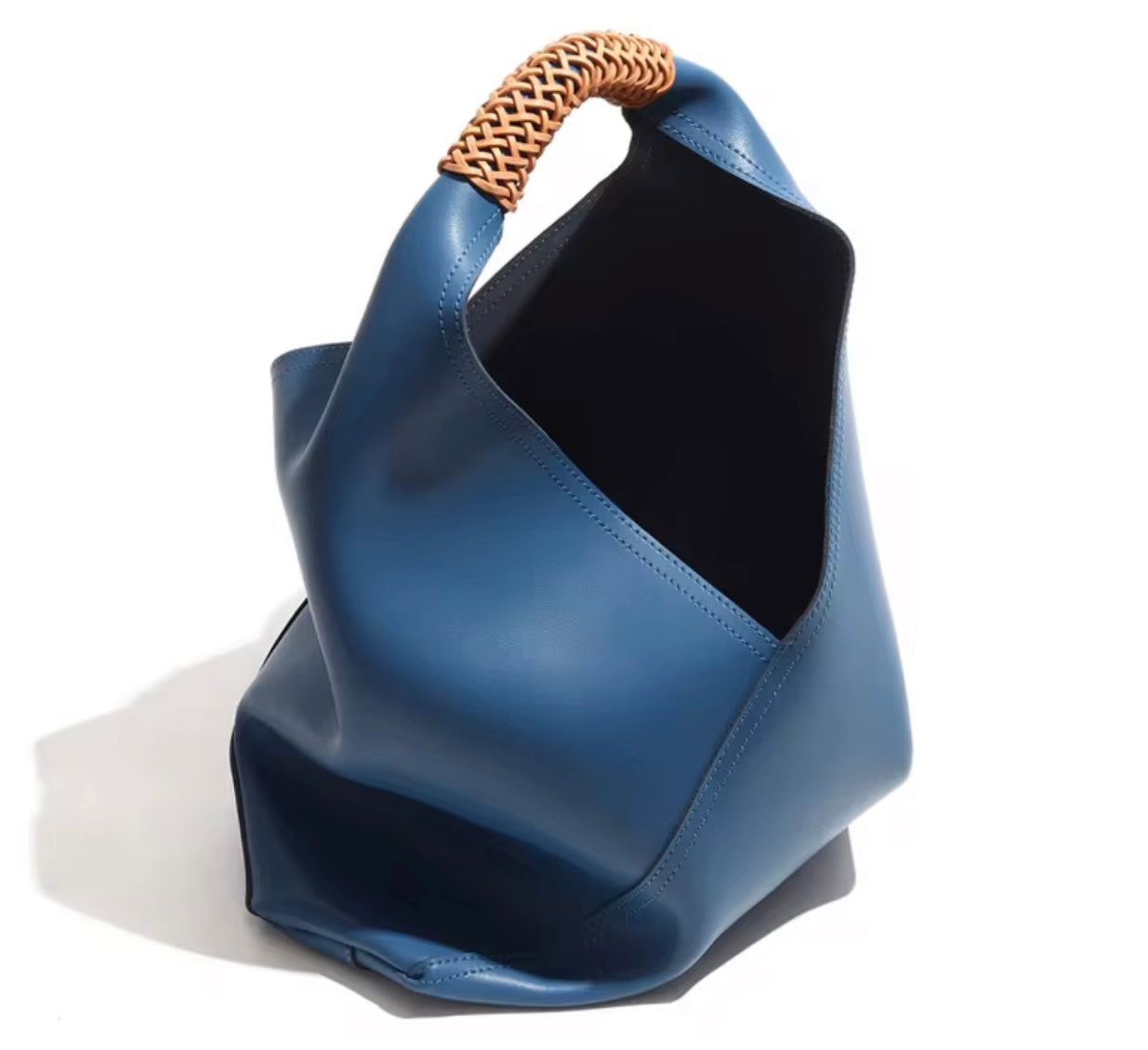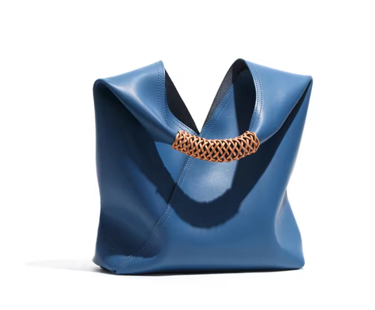 Meet The Sculptural Minimalist Leather Tote, where fluid form meets quiet luxury. Crafted from genuine leather and shaped with precision, this bag evokes the soft folds of fabric yet holds its structure with intention. The design is both minimalist and bold, featuring a cinched silhouette and a woven handle detail that feels like a secret nod to the art of craftsmanship.